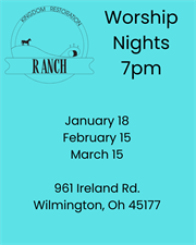 Please join Kingdom Restoration Ranch for a Night of Worship Sunday, January 18 at 7pm. 961 Ireland Rd. Wilmington, Oh 45177